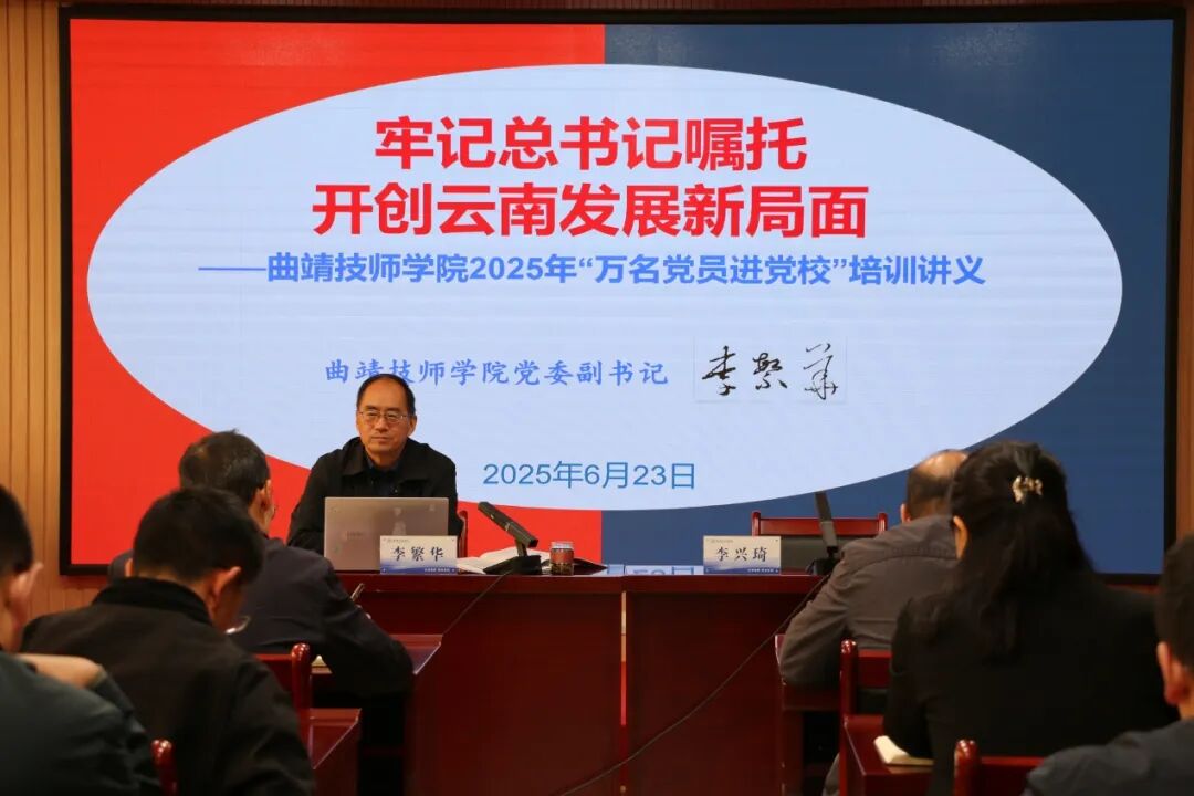 为深入学习贯彻习近平新时代中国特色社会主义思想、党的二十届三中全会精神、习近平总书记考察云南重要讲话精神和中央八项规定精神,深刻领悟“两个确立”的决定性意义,进一步增强“四个意识”,坚定“四个自信”,做到“两个维护”,强化党性修养和党性锻炼,激励全体党员干部把思想统一到习近平总书记考察云南重要讲话精神上来,把智慧和力量凝聚到学院改革发展事业中,6月23日6月25日,曲靖技师学院党委开展“万名党员进党校”暨深入学习贯彻习近平总书记考察云南重要讲话精神集中培训,全体党员、预备党员、发展对象、入党积极分子进行为期三天的培训。